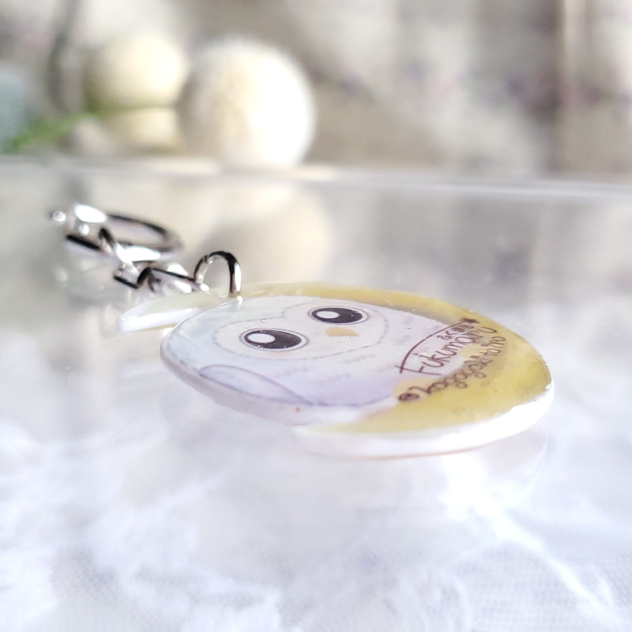 裏側にも『ふくまる』を配置してレジンでコーティングして仕上げました。
