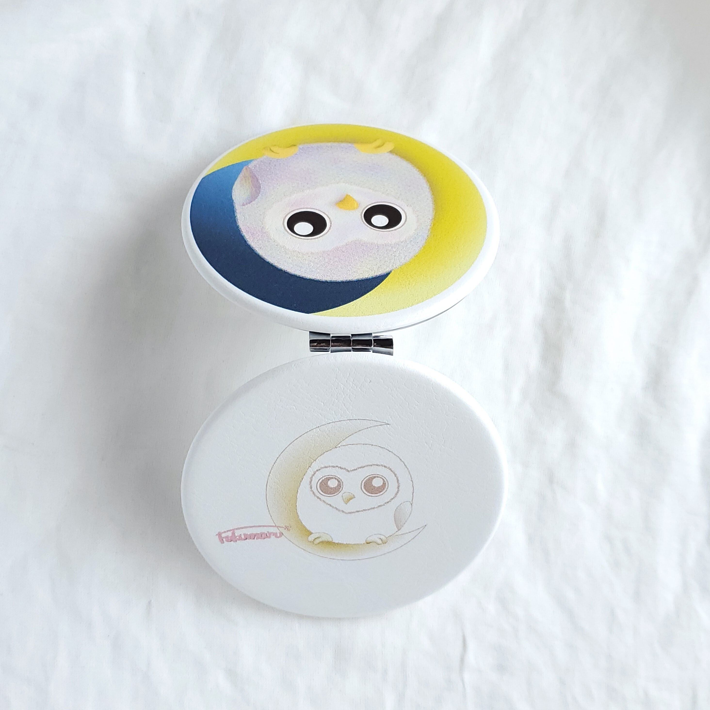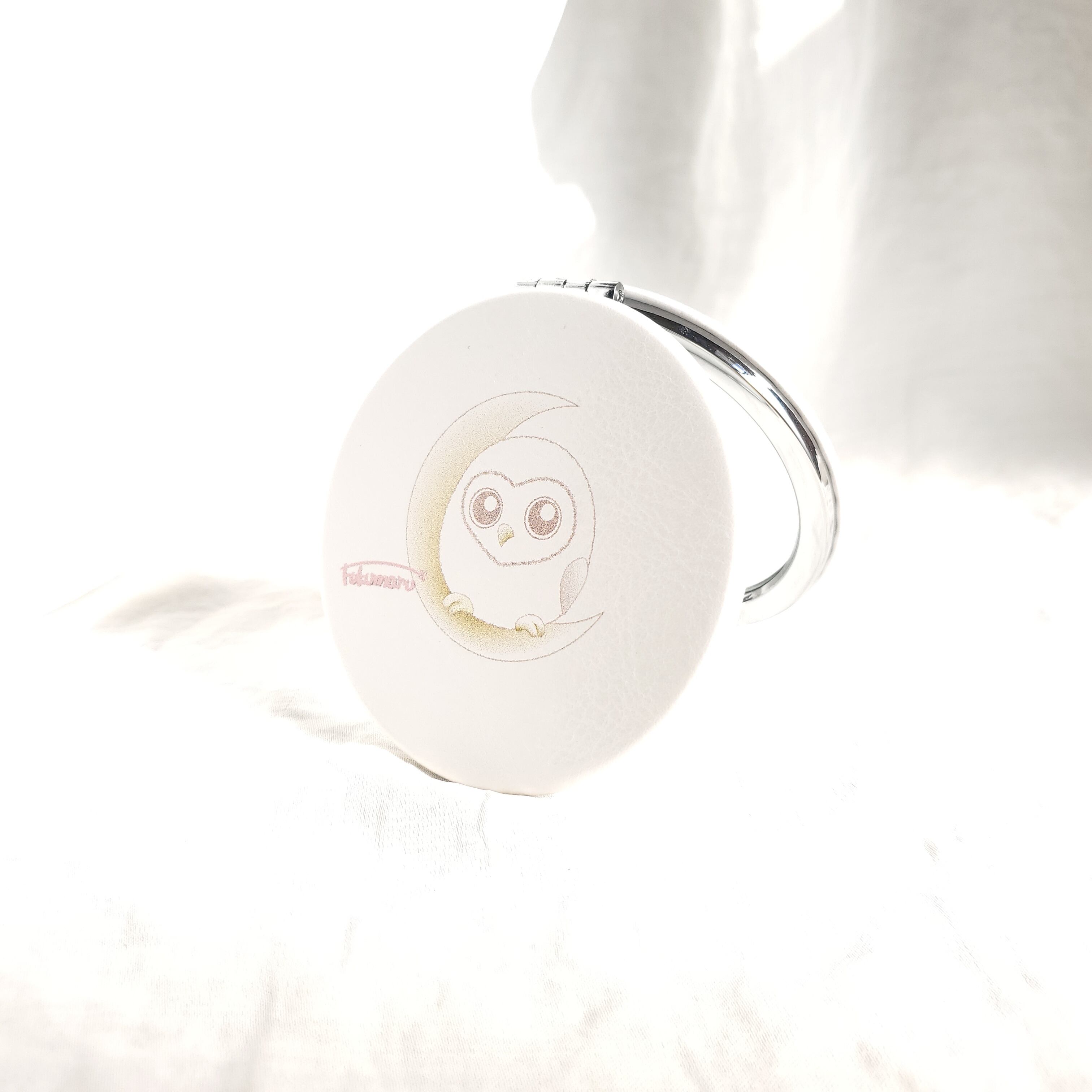 『ふくまるとお月様』丸型PUレザーの折りたたみミラー(拡大鏡付き)