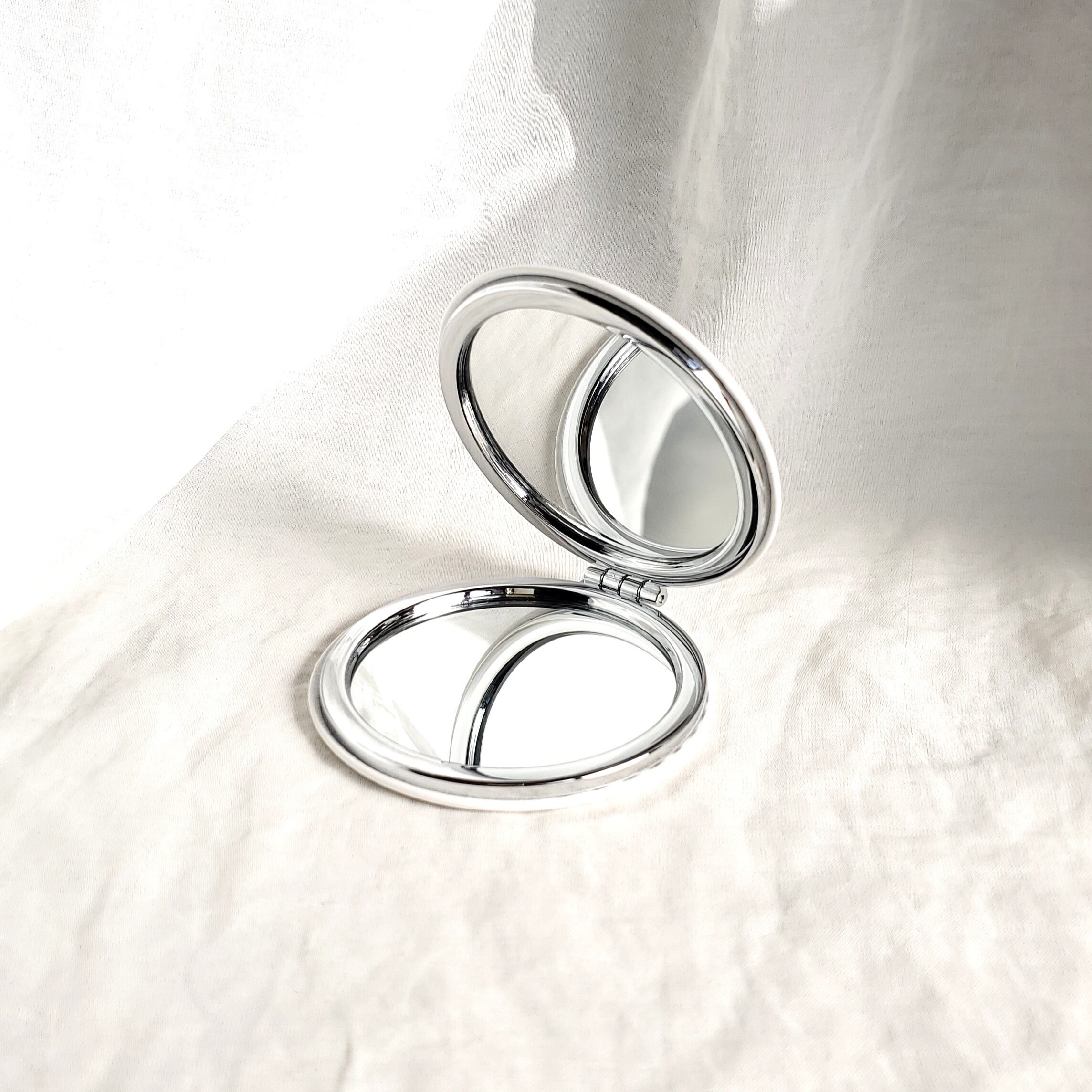 高級感があり、手触りも良く、汚れにくいPUレザー生地の折りたたみコンパクトミラーの両面に絵柄違いで配置しました!