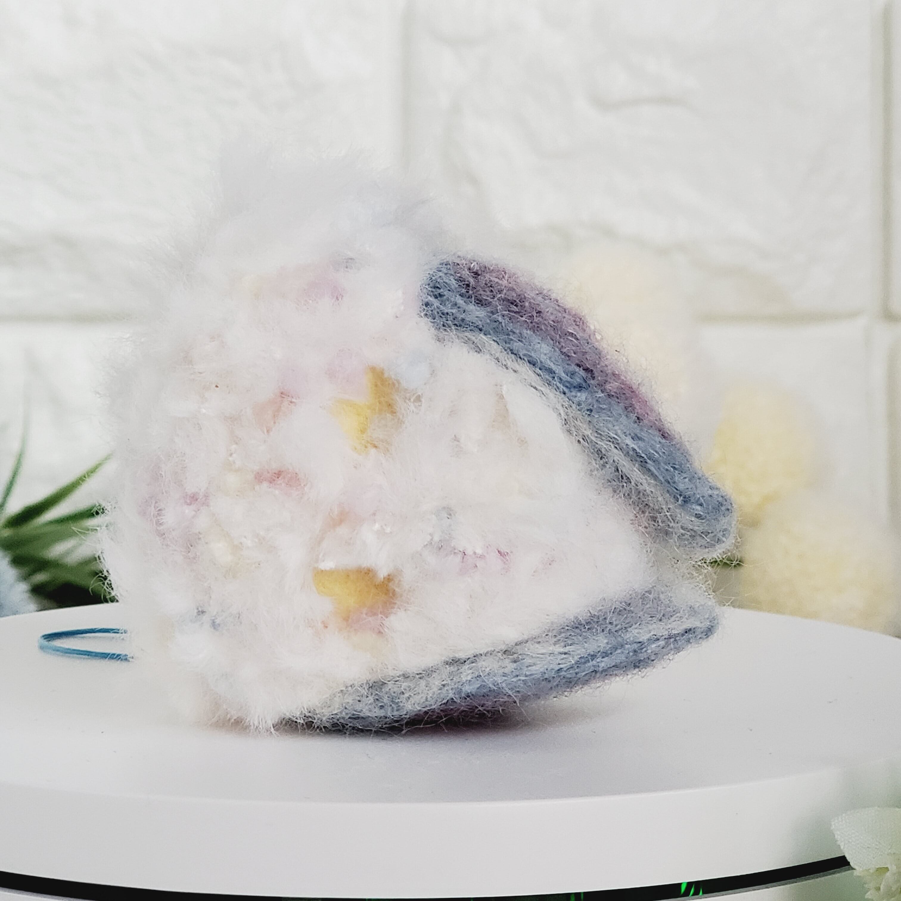 毛糸と羊毛フェルトを使って一羽ずつ手作業で愛情を込めて作製した愛嬌たっぷりパッチリおめめでまんまるフワフワのふくまるさんです!