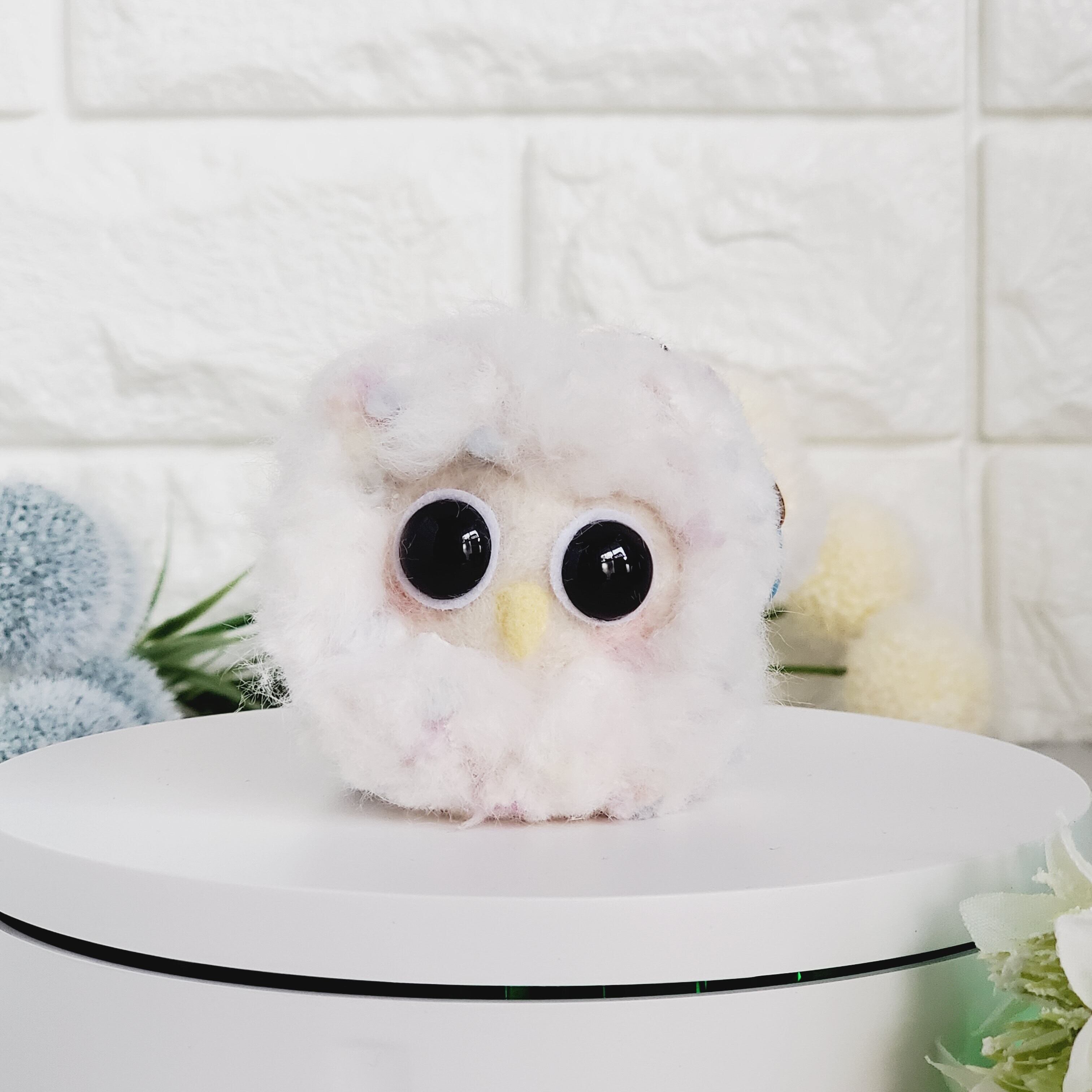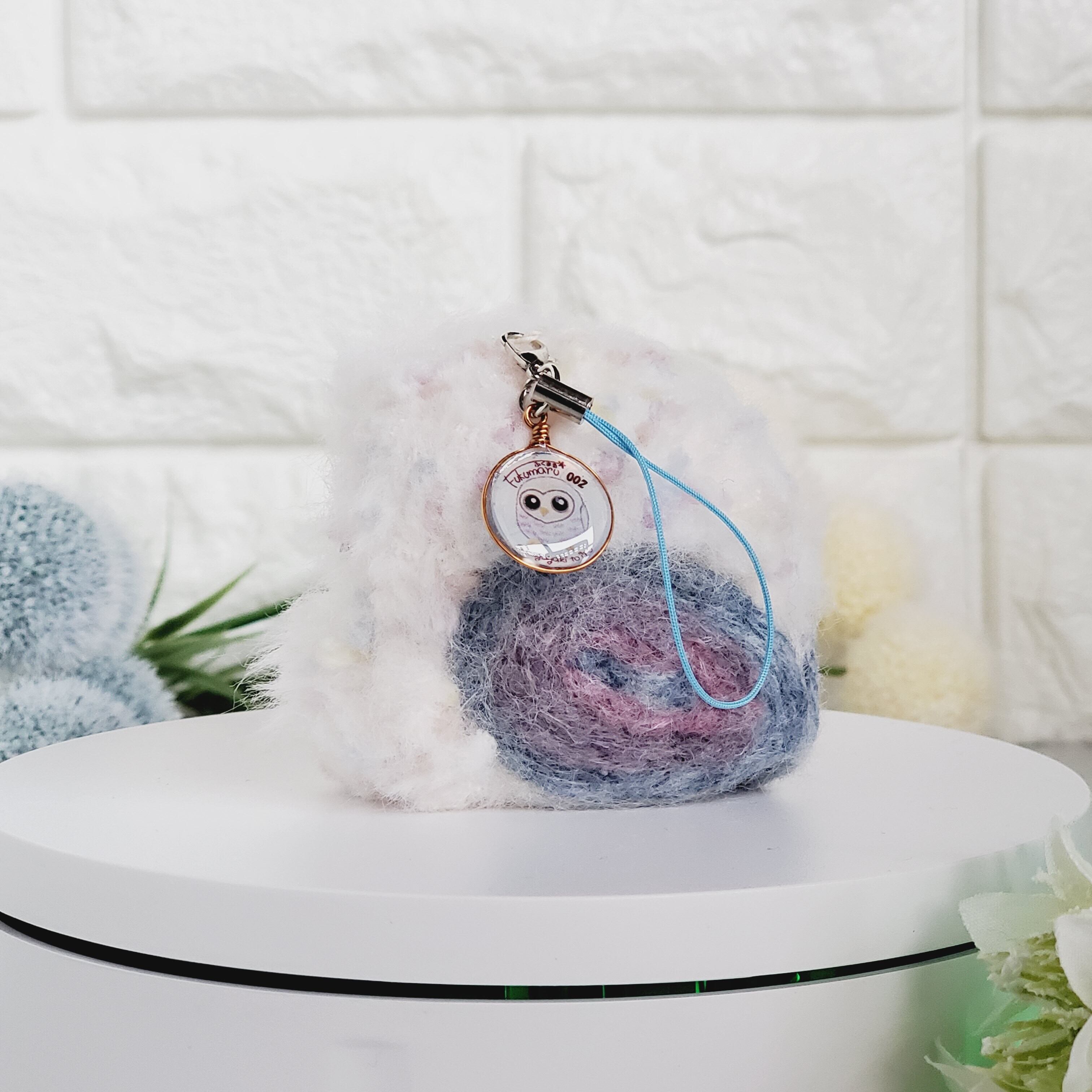 毛糸と羊毛フェルトを使って一羽ずつ手作業で愛情を込めて作製した愛嬌たっぷりパッチリおめめでまんまるフワフワのふくまるさんです!