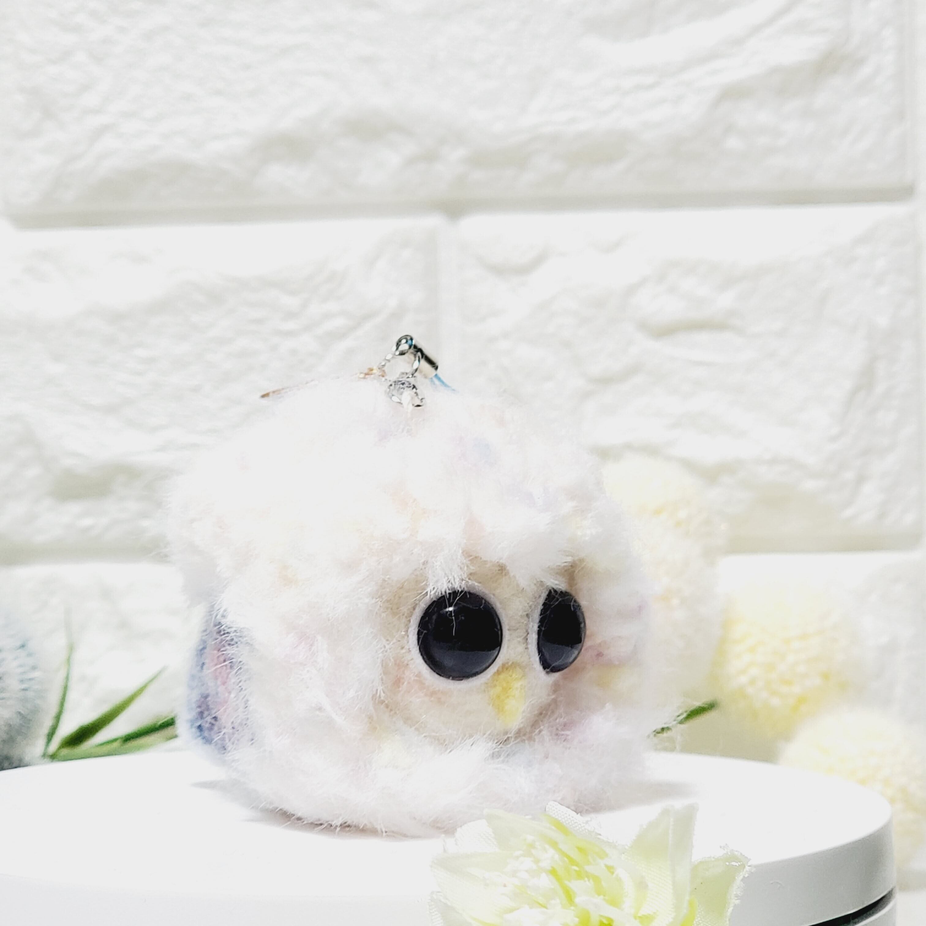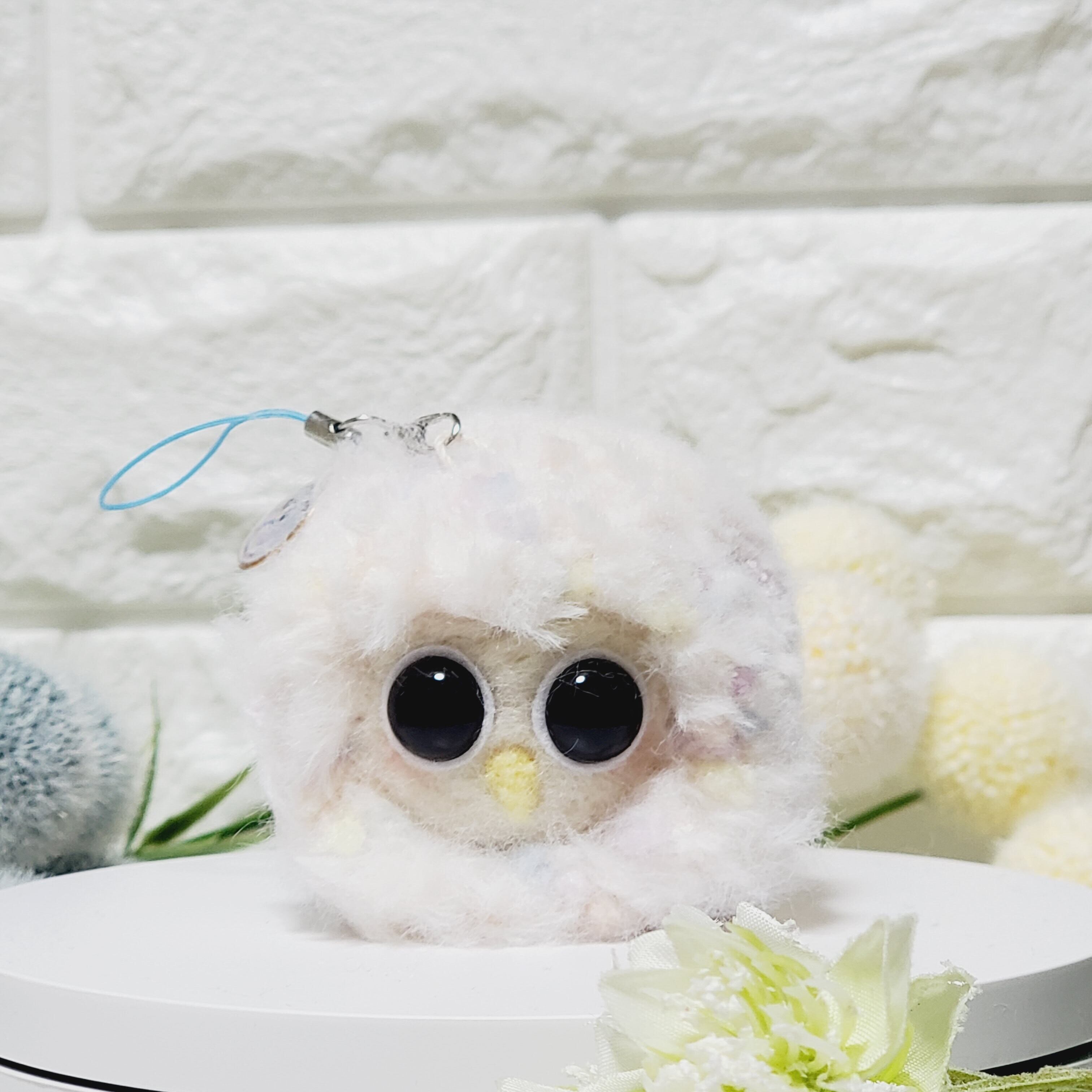 毛糸と羊毛フェルトを使って一羽ずつ手作業で愛情を込めて作製した愛嬌たっぷりパッチリおめめでまんまるフワフワのふくまるさんです!