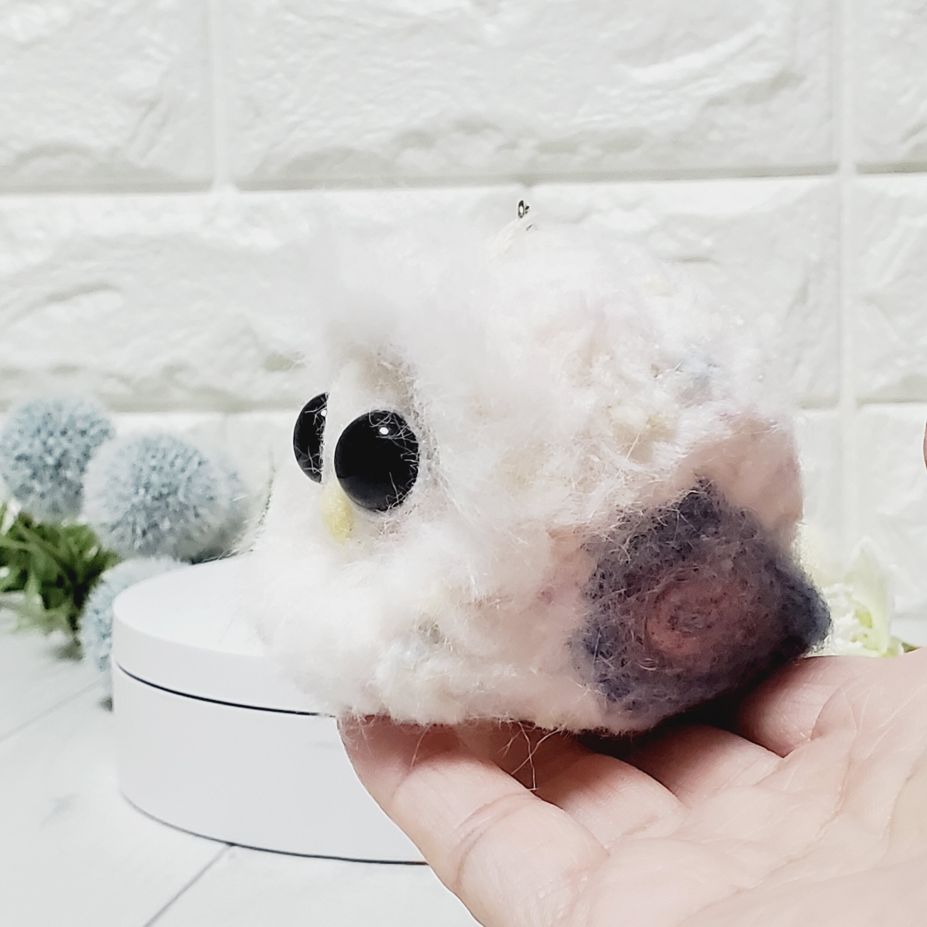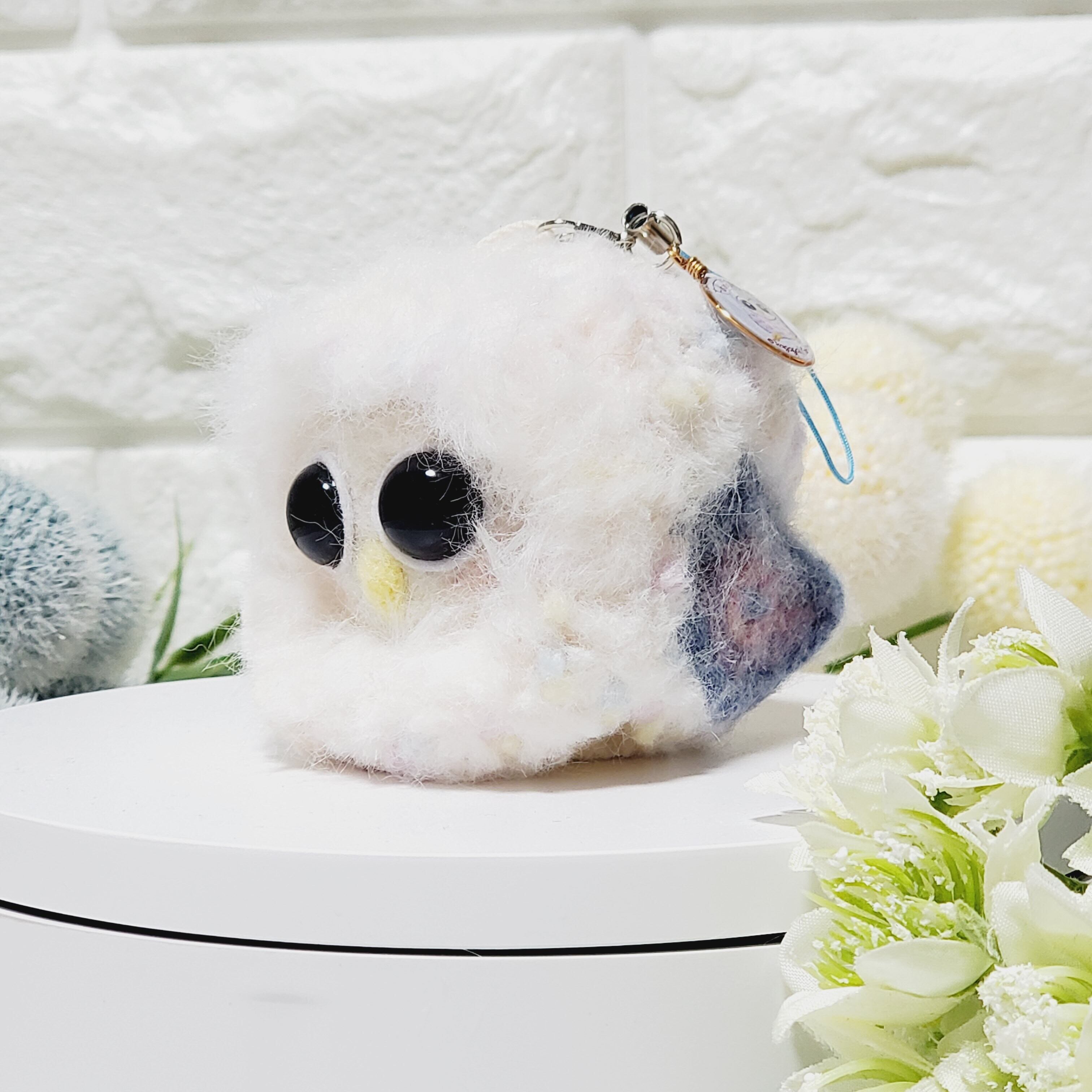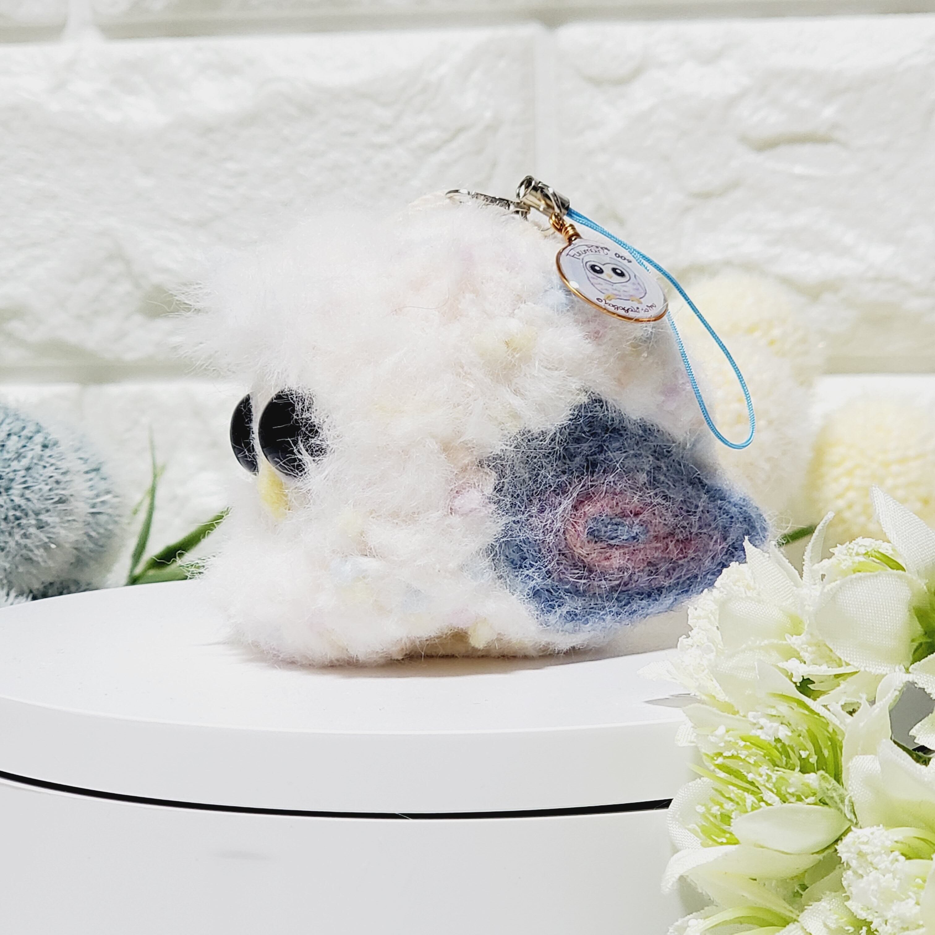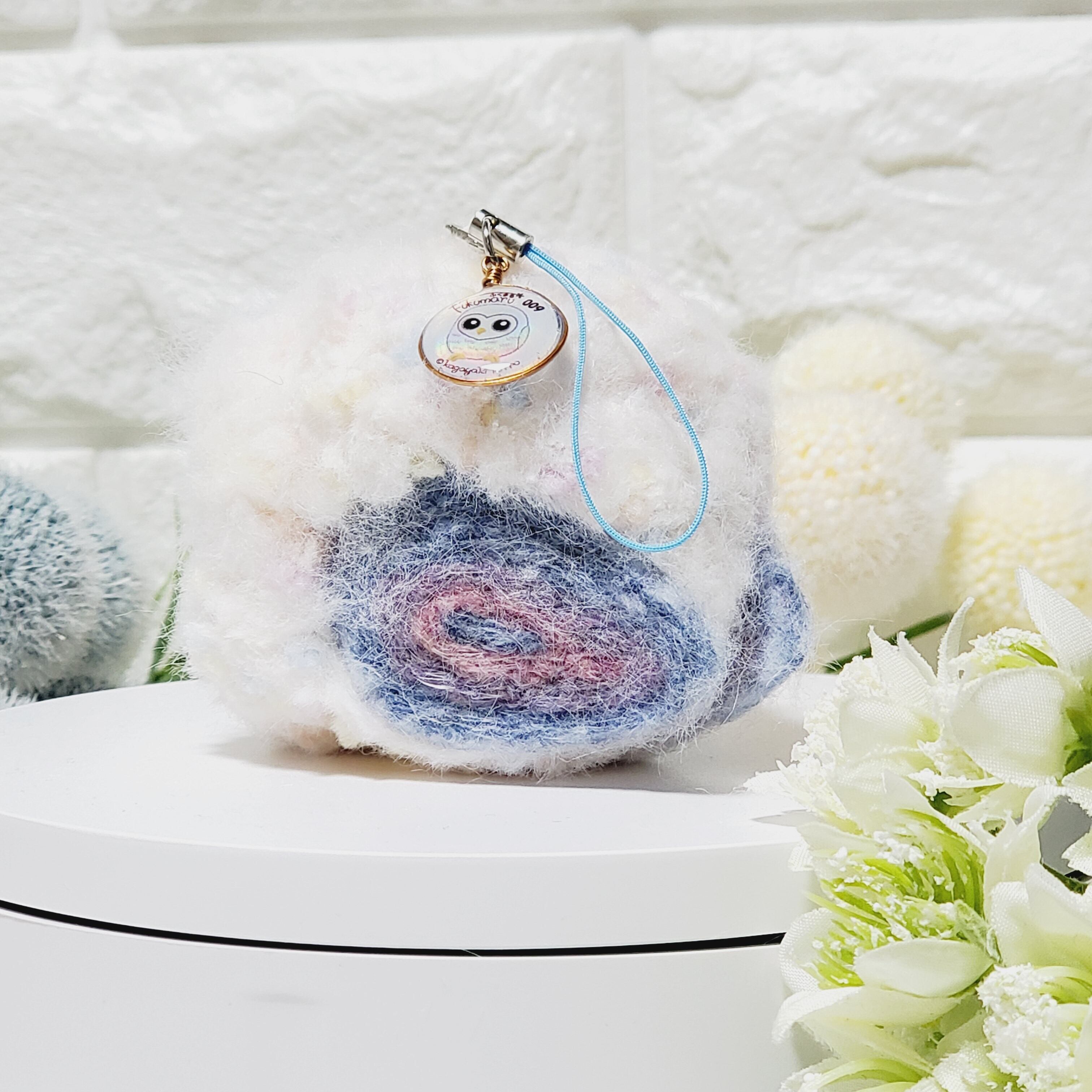毛糸と羊毛フェルトを使って一羽ずつ手作業で愛情を込めて作製した愛嬌たっぷりパッチリおめめでまんまるフワフワのふくまるさんです!