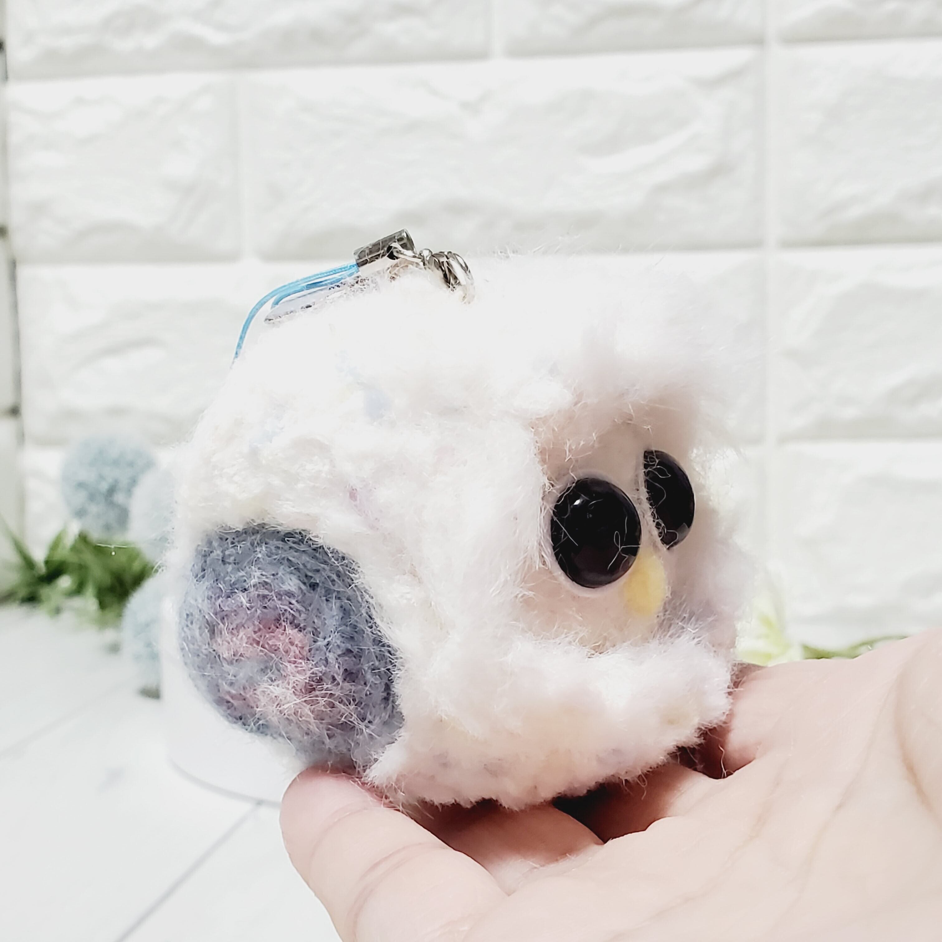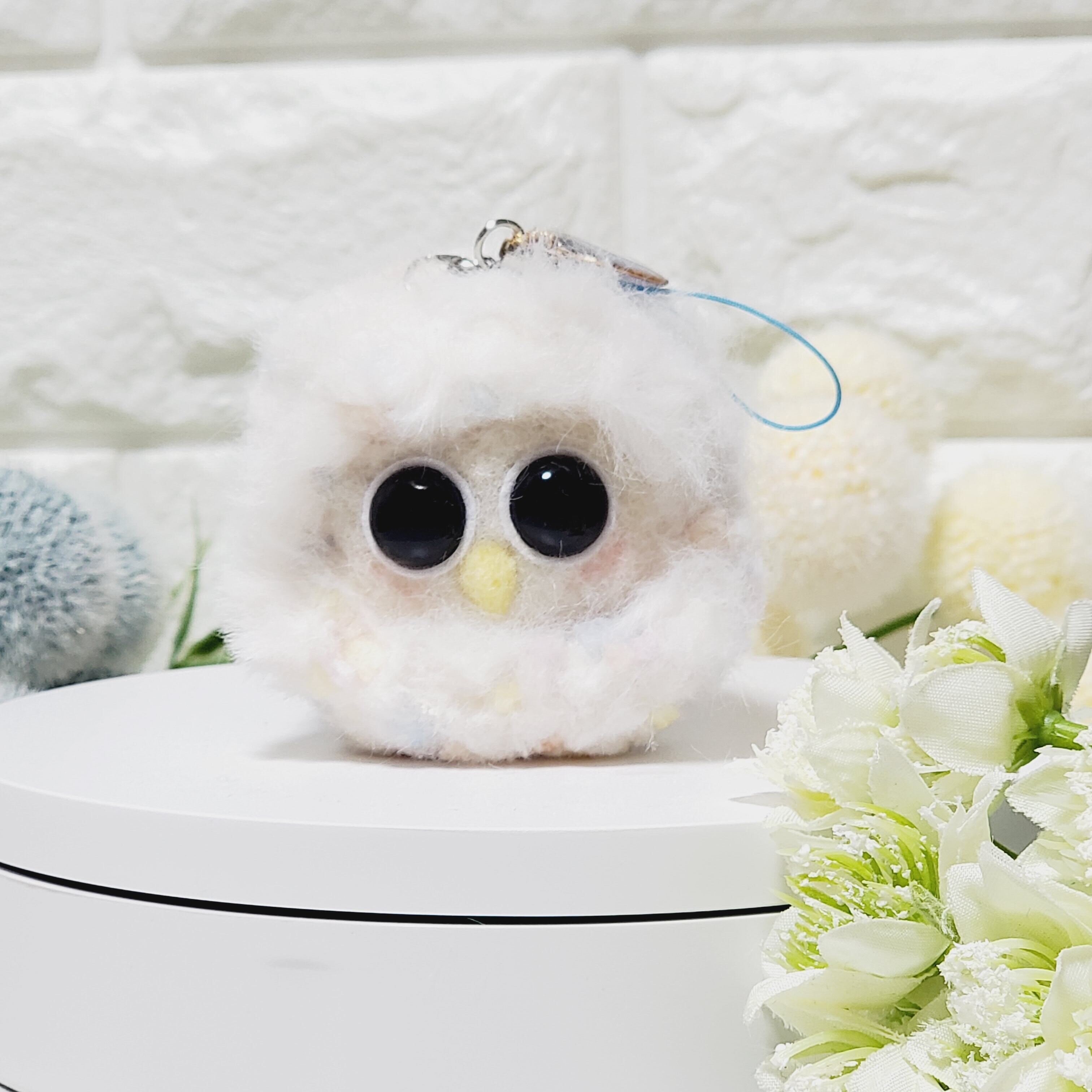 毛糸と羊毛フェルトを使って一羽ずつ手作業で愛情を込めて作製した愛嬌たっぷりパッチリおめめでまんまるフワフワのふくまるさんです!